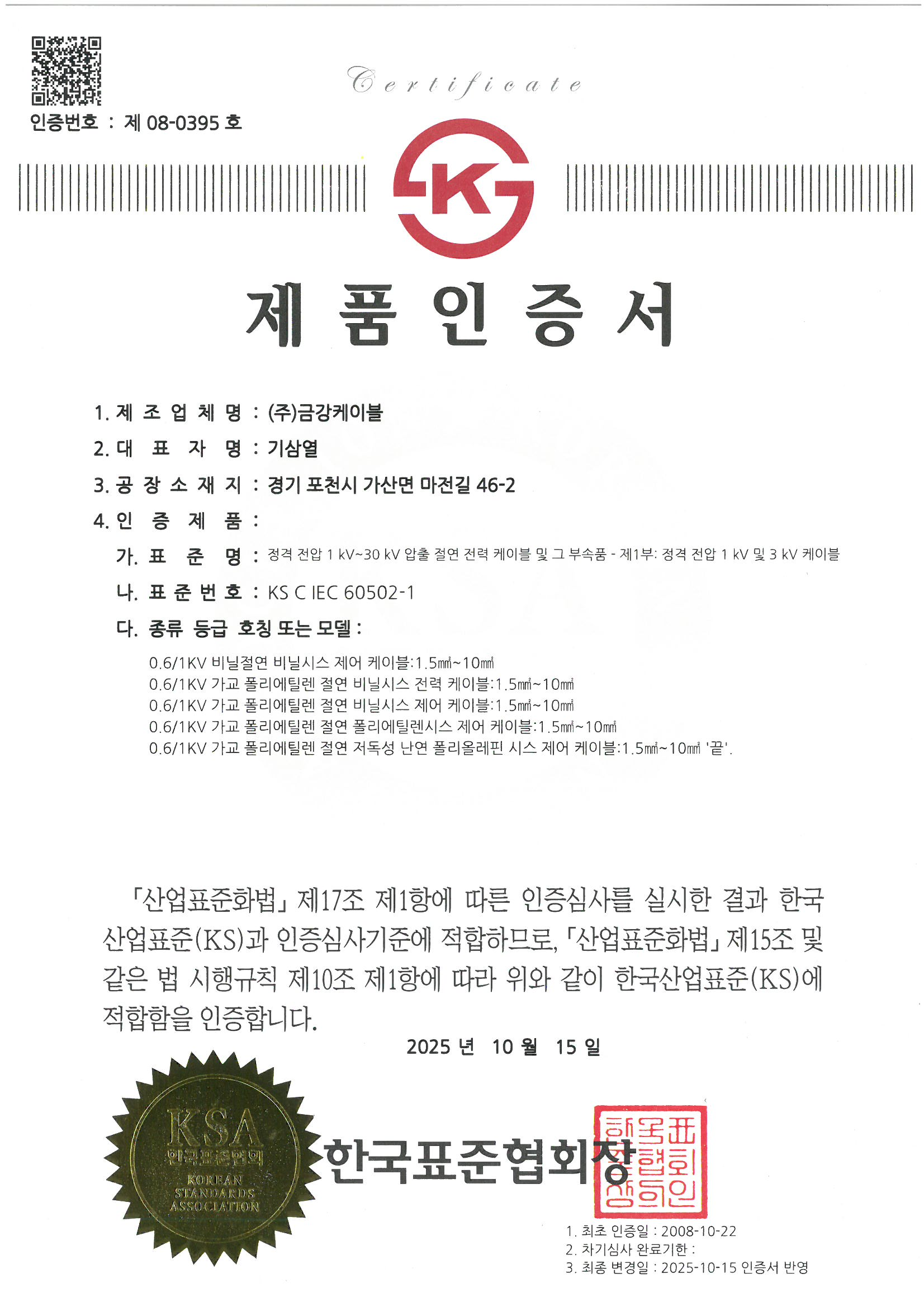 정격 전압 1~30 KV 압출성형절연전력케이블 및 그 부속품-제1부:케이블(1KV 및 3KV)
